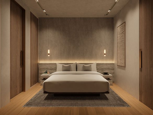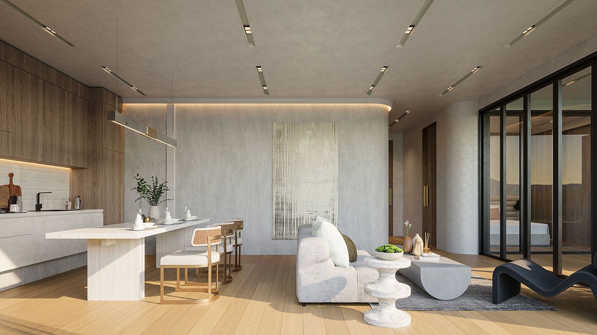 Two-Bedroom Condo is a haven of tranquility, perfect for individuals or couples who value spaciousness, as well as young families. In each 102 m2 unit, modern elegance and an elevated aesthetic are harmoniously blended across two bedrooms and two bathrooms.