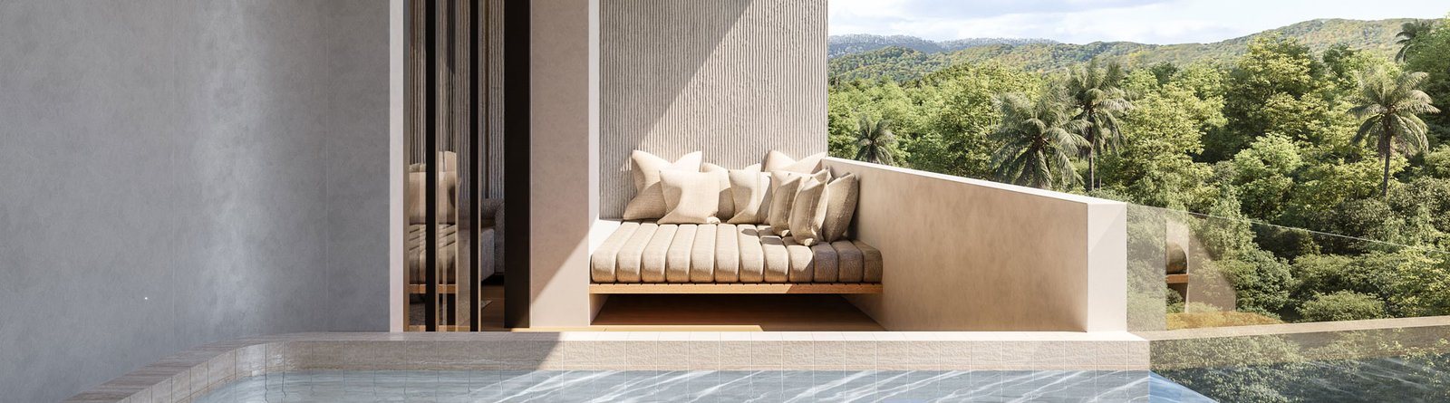 The Two-Bedroom Corner Condo is the epitome of spaciousness and grandeur, standing as the most impressive offering in the development. This expansive two-bedroom condo is designed to provide an unparalleled living experience, complete with a terrace and a private pool.